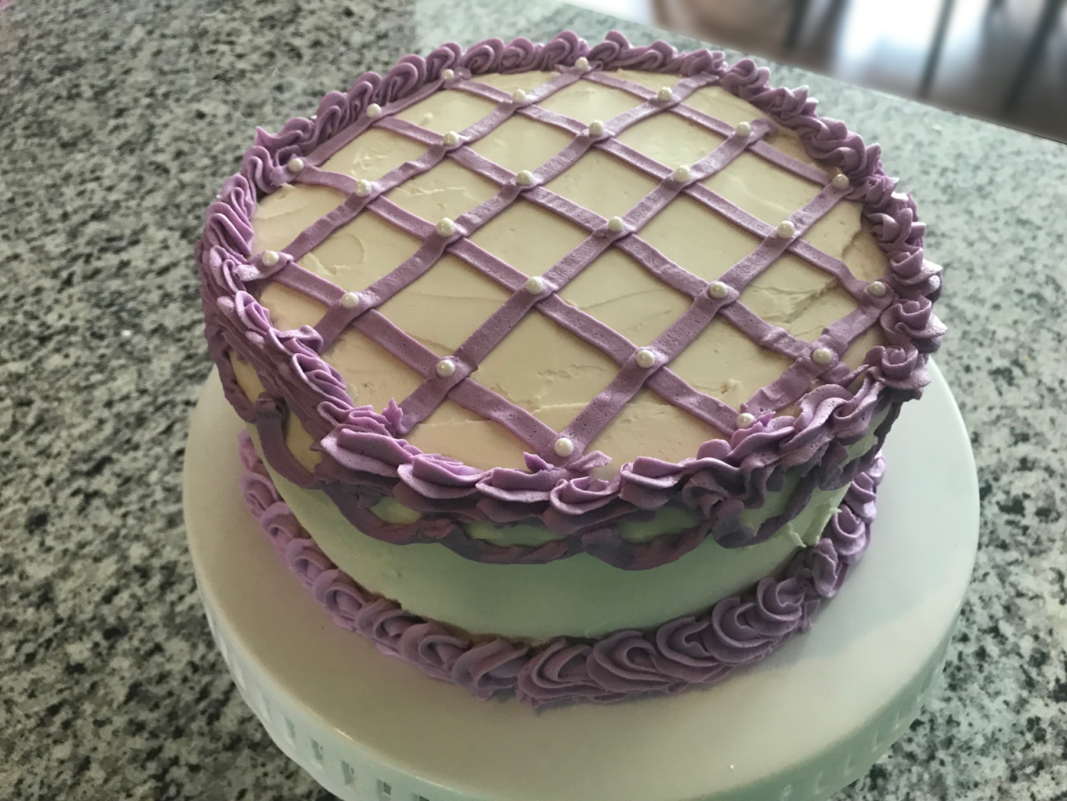 Aunt Dot’s birthday cake was always something people looked forward to. It was a delicious yellow cake, topped with fresh buttercream. My opinion is that REAL buttercream or cream cheese frosting are the only types of frosting that should ever be used on a cake. Aunt Dot always made this in a single deep cake pan as a two layer cake. My modification is to cook it in two 9″ cake pans, and then cut those in half to make a four layer cake. I do a layer of cake, a layer of raspberry jam, a layer of cake, a layer of buttercream frosting, a layer of cake, a layer of raspberry jam, a layer of cake and then frost the whole cake with buttercream.